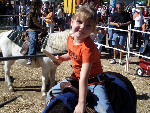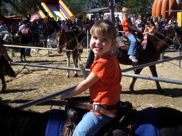 | Last years pumpkin festival was so much fun, we decided to do it again!! The girls had a blast last year riding ponies and just good old fashioned "fun on the farm." We traveled to Prescott Friday night and arrived about 11:45pm, went to a great little restaurant called "The Dinner Bell" on Gurley St. for breakfast, the Harvest Festival all day Saturday and another great restaurant on Gurley St. called Genovese's for dinner. We stayed up kind of late on Saturday with Andrea's brother, Brent and his wife, Kim catching up on everyones relationship stories, that was lots of fun. We returned home Sunday afternoon after eating breakfast and toodling around at some shops by "Whiskey Row". This year we also brought a good friend from Greg's work and his daughter. They drove down with us in our car. It's a good thing everyone likes it LOUD!! We stayed with Brent and Kim at a condo near Greg's grandma's house. Unfortunately, this was the last year for the pumpkin festival since "Young's Farm" was forced to sell to developer's to build more homes. This link will take you to the Young's Farm Pumpkin Festival